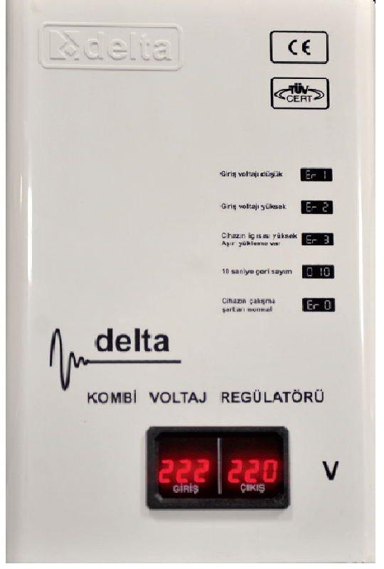 Relay Type DELTA MCU 8 Series Single Phase Digital Stabilisers (0,5-3kVA) protect your home devices against voltage fluctuations, lenghtens their life. They can be used for wall hung water boilers, DVD players, music centres, LCD & Plazma TV, Satellite receivers..etc to obtain much better efficiency.
